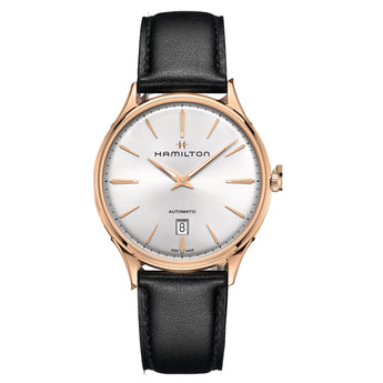 The Jazzmaster Thinline Gold represents Hamilton's 40 MM , Brand new ,proud history of producing precision watches. Featuring an 18 carat rose gold case, this refined watch strikes a balance between traditional watchmaking, quality craftsmanship and an understanding of the needs of today's wearer. Comfortable and lightweight, it is limited to 1,892 pieces in tribute to the date Hamilton was founded in Lancaster, Pennsylvania. 2023 Box and Papers