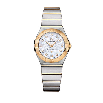 Omega Ladies Constellation Quartz 27mm 123.20.27.60.55.002 Yellow Gold White Mother of Pearl MOP Diamond Dial, Worn
